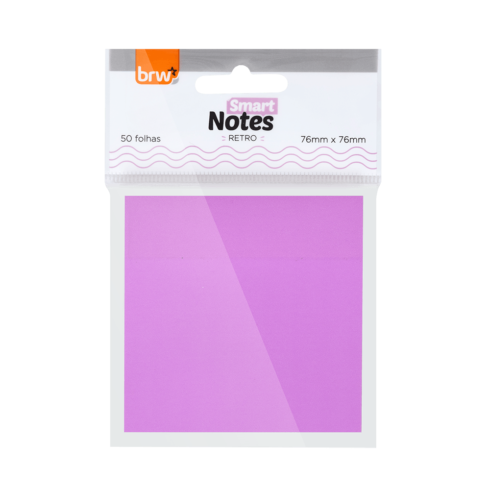 Bloco de notas autoadesivas BRW Smart Notes, tamanho 76x76mm, com 50 folhas em cores Retrô. Adesivo reposicionável que fixa bem e não danifica superfícies. Ideal para lembretes, marcações e organização diária no escritório, escola ou home office. Produto prático, funcional e com estilo vintage para papelaria.